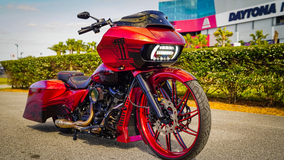 AVAILABLE NOW~ 2023 Candy Red 26″ Road Glide Taildragger! This is the cleanest bike with details that go past the visible eye on this sexy build…
